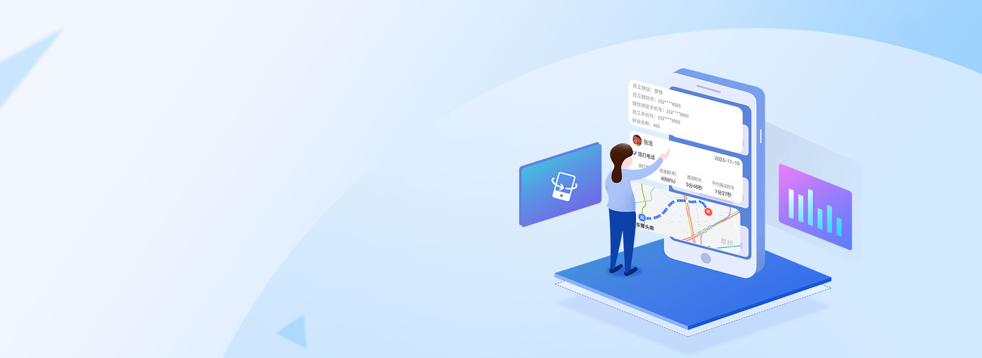 销动云CRM工作手机 ,将员工手机微信上的好友中心化收集 ,沉淀为企业的永久客户数据,员工手机营销敏感行为实时监管,规范服务输出,提升服务质量,精准数据统计,助力企业营销